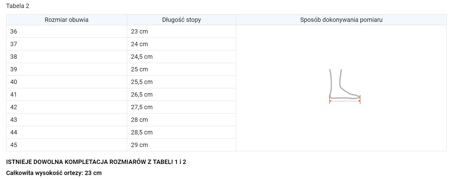 - Tabela 2 - rozmiar obuwia, długość stopy