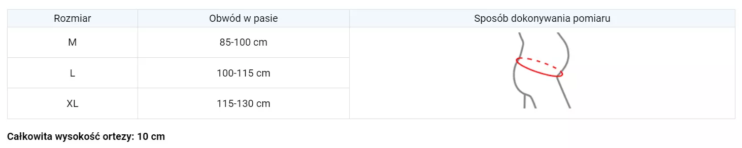 W celu dobrania odpowiedniego rozmiaru zmierz obwód w pasie.