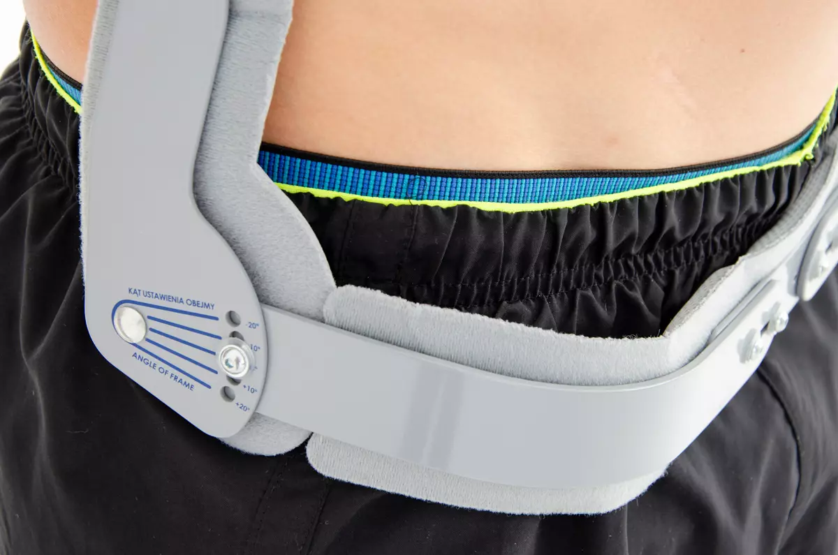 Rama łonowa posiada system regulacji kąta jej ustawienia. Gorset posiada dodatkowe, elastyczne zapięcie oraz boczną klamrę napinającą, która umożliwia indywidualną regulację siły ucisku, dopasowaną do potrzeb.
