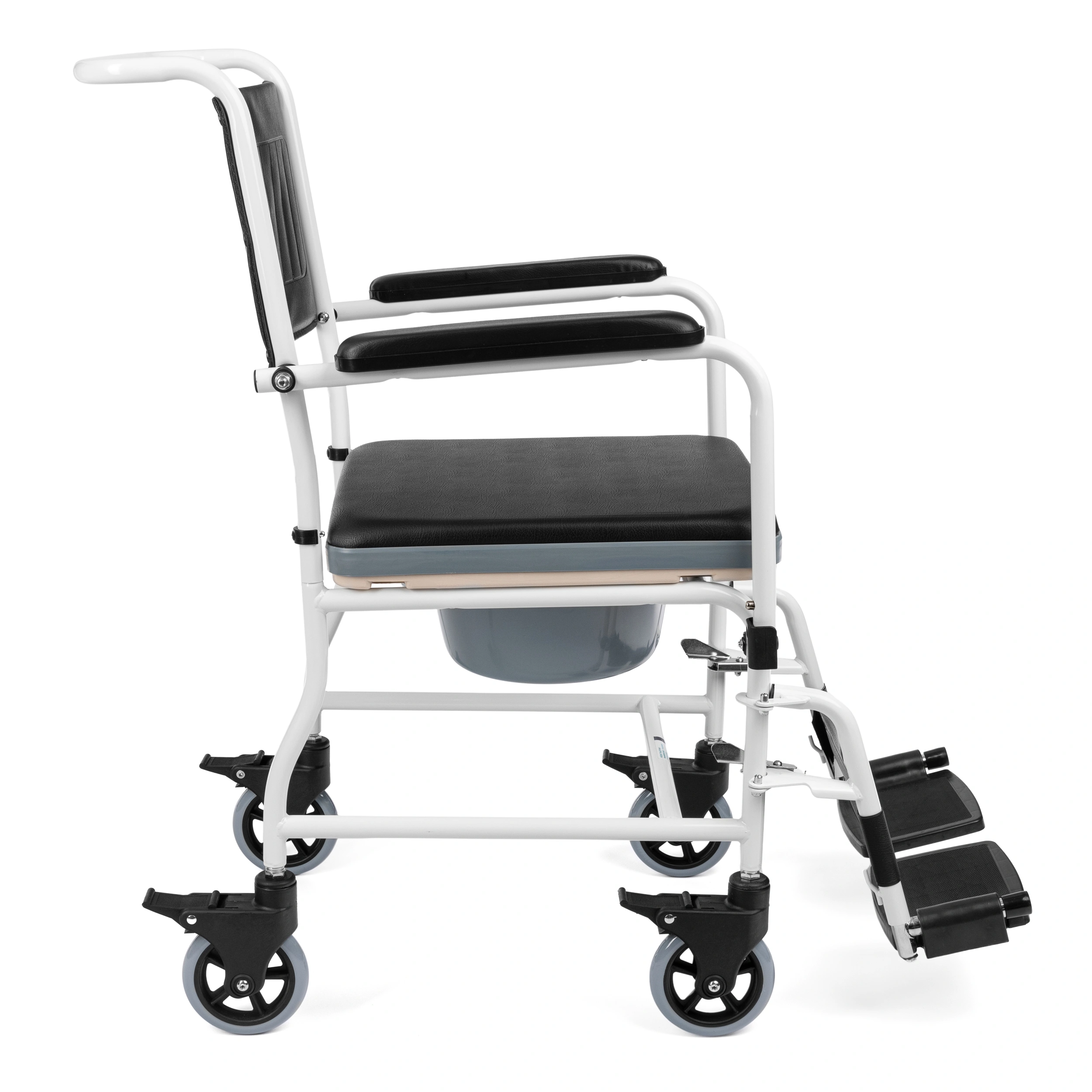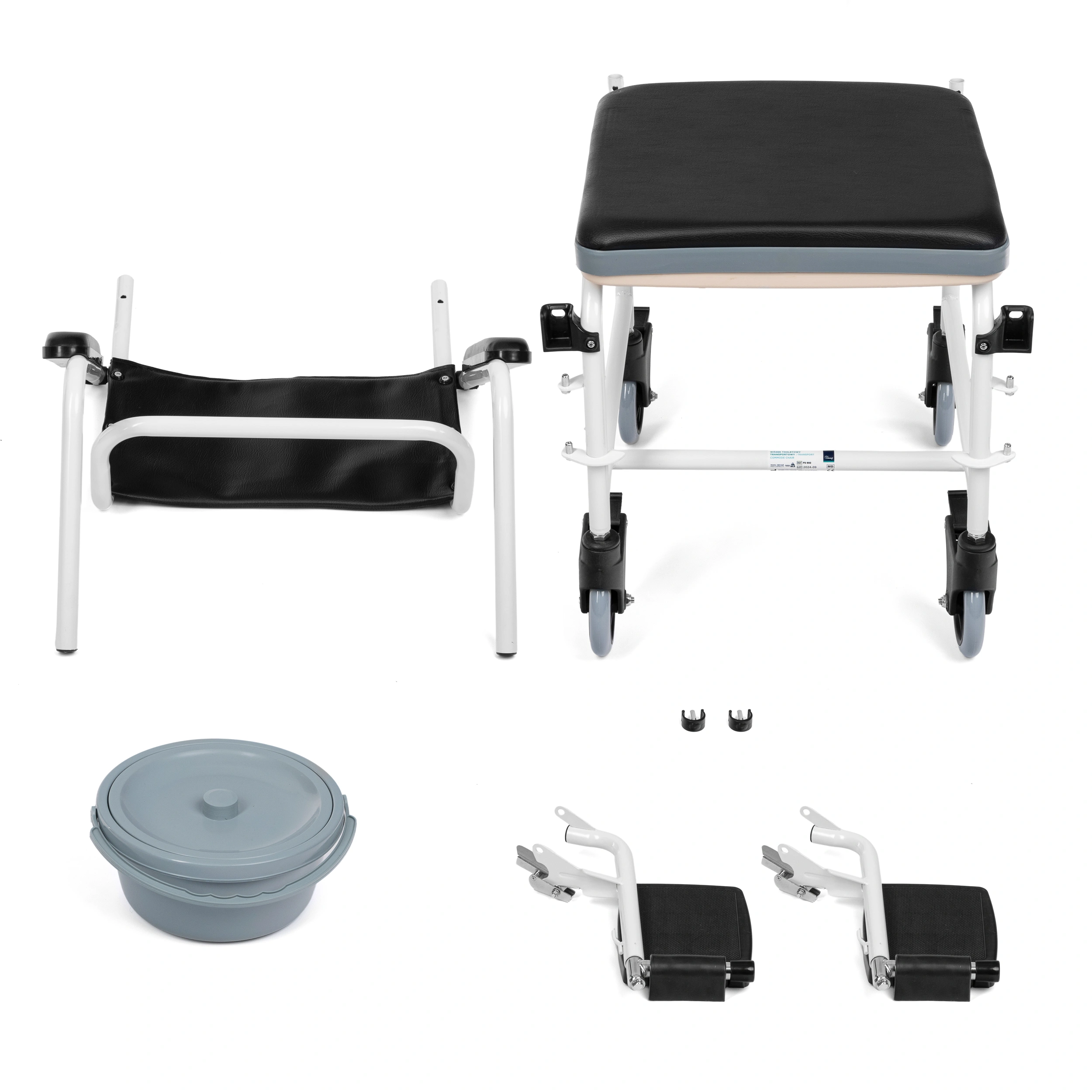 Wózek pełni funkcję transportowo-toaletową. Posiada pojemnik sanitarny pod siedziskiem i cztery obrotowe koła, którymi można najeżdżać na sedes. Wyrób ma na celu ułatwienie codziennej higieny pacjenta. Wyposażony został w uchylne podłokietniki, które ułatwiają wstawanie. Wykorzystany w wyrobie materiał jest przyjemny dla ciała i odporny na wilgoć.