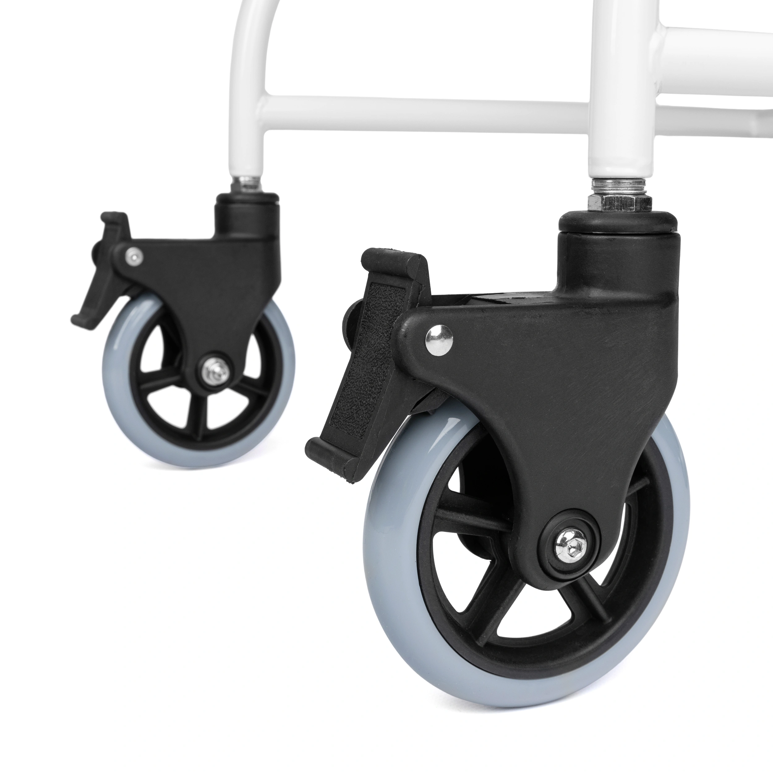 - Cztery obrotowe koła z hamulcami ułatwiające poruszanie się