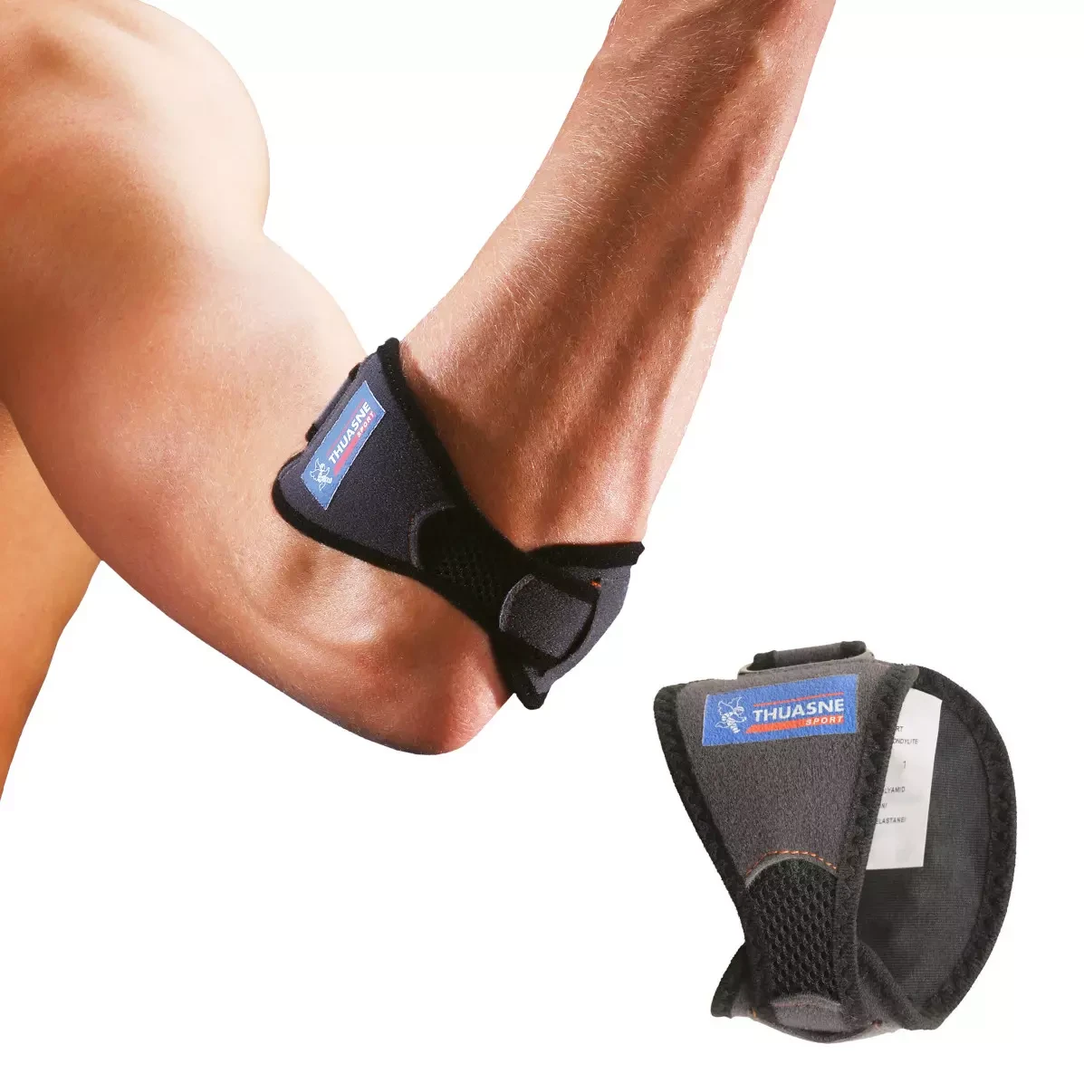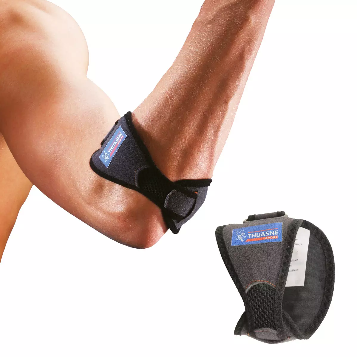 Opaska na łokieć tenisisty marki Thuasne skutecznie pomaga łagodzić i zapobiegać nasilaniu się objawów związanych zapaleniem ścięgien w rejonie nadkłykcia bocznego lub przyśrodkowego (łokieć tenisisty lub golfisty). Dwie silikonowe wkładki zapewniają ukierunkowany ucisk i zmniejszają napięcie w łokciu, w rezultacie czego łagodzą dolegliwości bólowe.