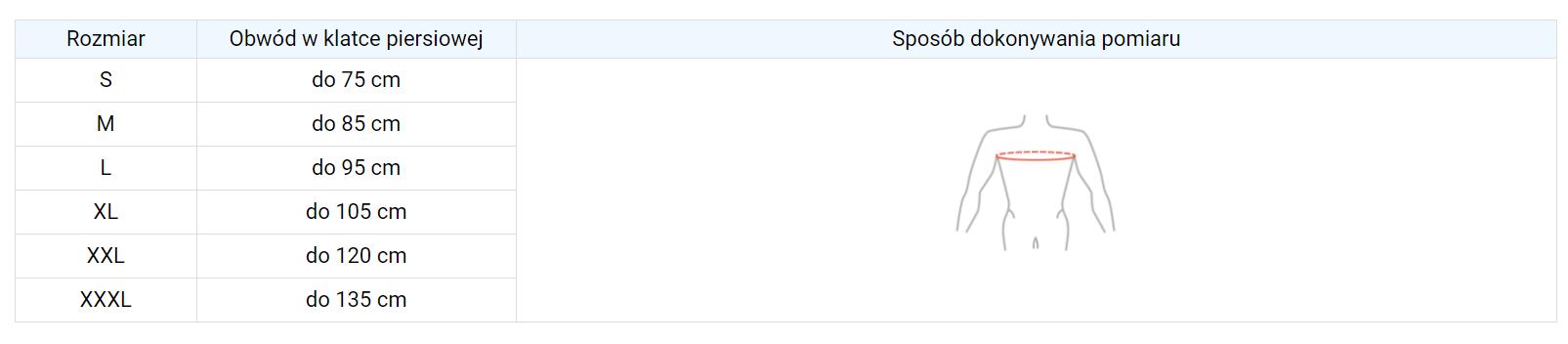 W celu dobrania odpowiedniego rozmiaru zmierz obwód w klatce piersiowej.