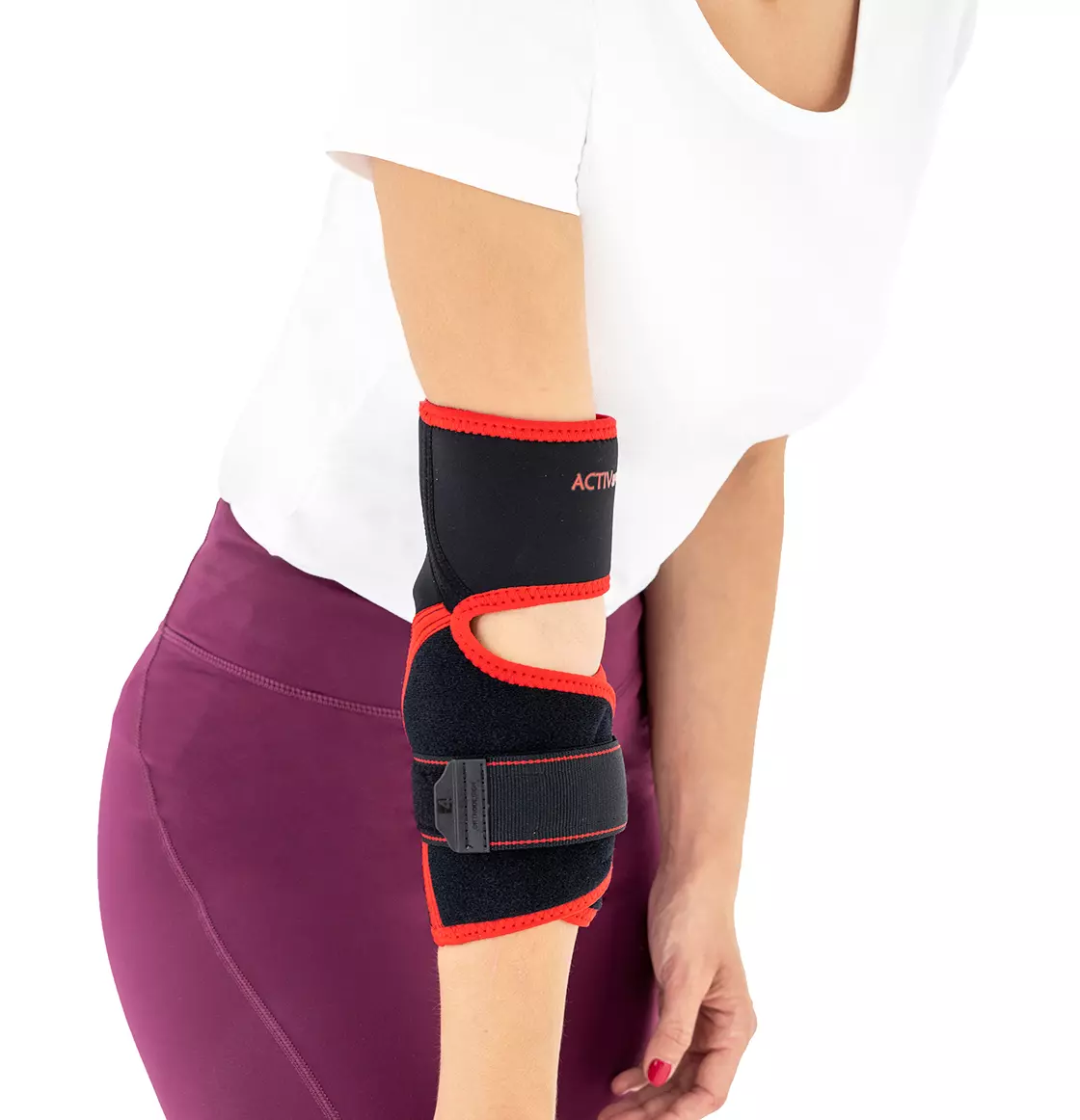 Orteza łokcia AS-L-01 od marki Reh4Mat przeznaczona jest do stosowania w przypadku dolegliwości bólowych związanych z łokciem tenisisty lub golfisty. Posiada specjalną, silikonową pelotę z wypustkami, które wywierają ucisk na mięśnie i ścięgna łagodząc dolegliwości bólowe. W zależności od potrzeb pelota może być umiejscowiona po stronie bocznej stawu łokciowego (łokieć tenisisty) lub przyśrodkowej (łokieć golfisty). Dodatkowo zastosowanie pasa obwodowego pozwala na regulację siły ucisku i kompresji w obrębie łokcia.