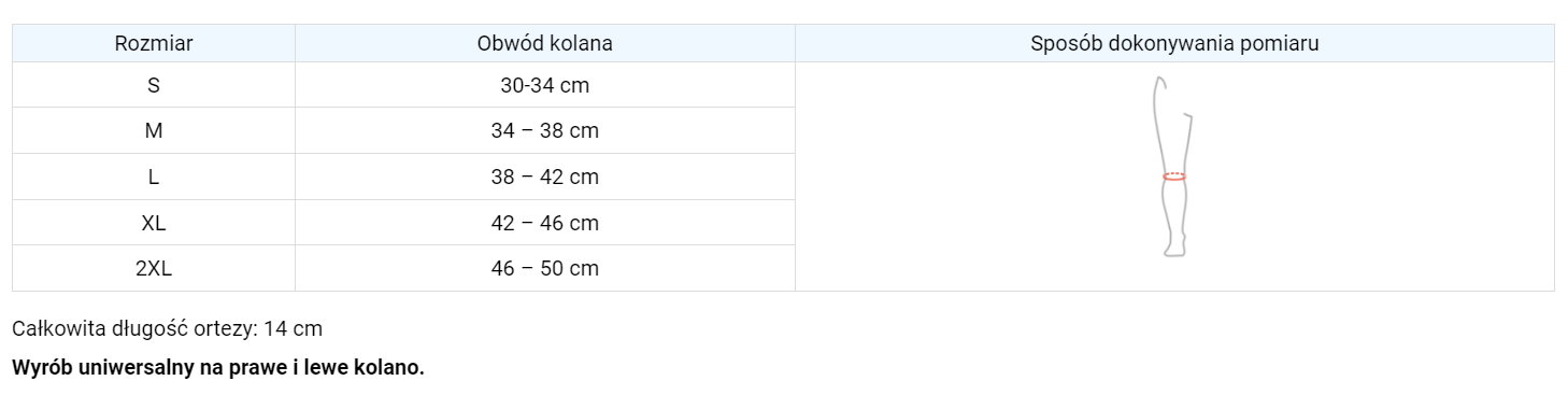 W celu dobrania odpowiedniego rozmiaru zmierz obwód kolana.