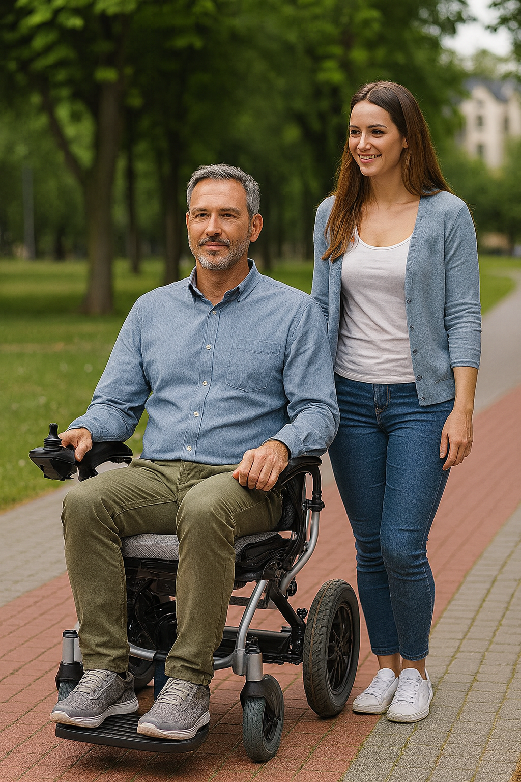 Wózek elektryczny NanoGo od marki Reha Fund to nowoczesny, składany wózek inwalidzki z napędem elektrycznym, przeznaczony dla osób z ograniczoną mobilnością. Doskonały dla seniorów, pacjentów po operacjach, osób niepełnosprawnych oraz opiekunów, którzy szukają lekkiego i łatwego w obsłudze rozwiązania. Dzięki kompaktowej konstrukcji i możliwości składania, idealnie sprawdza się w domu, na spacerach, a także w podróży – mieści się w większości bagażników samochodowych. Zasięg na jednym naładowaniu wynosi 20 km.