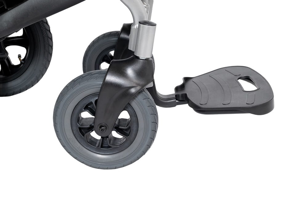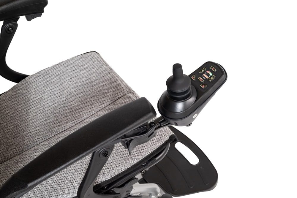 Wyposażony w intuicyjny joystick, regulację prędkości i wypinaną baterię, zapewnia wygodę użytkowania na co dzień, bez potrzeby pomocy ze strony drugiej osoby. Wózek jest lekki, ale stabilny, a jego duże, pneumatyczne tylne koła gwarantują komfort jazdy nawet po mniej równych nawierzchniach.