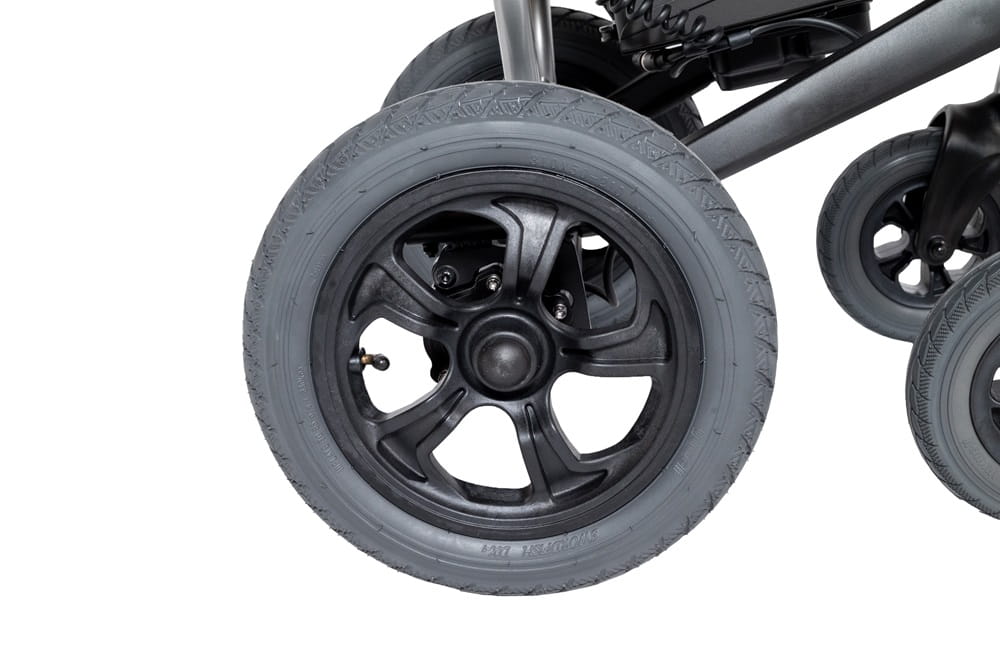 - Tylne koła pneumatyczne 12” – komfort i lepsza amortyzacja