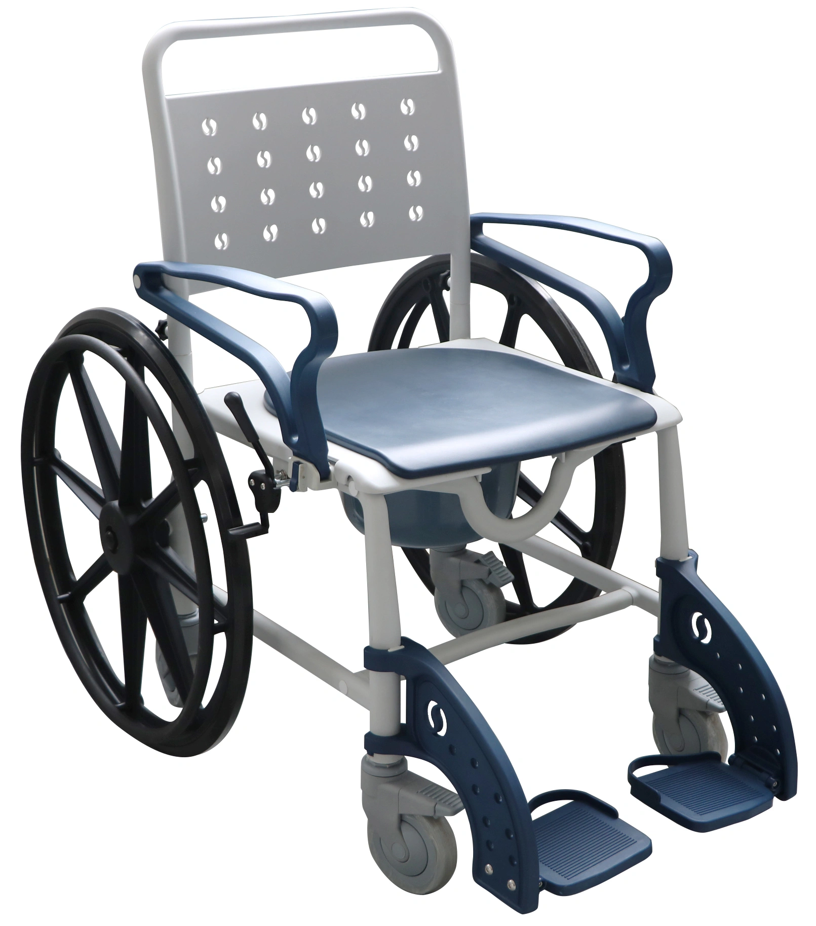 - Możliwość najazdu na sedes – wózek można ustawić bezpośrednio nad muszlą klozetową.